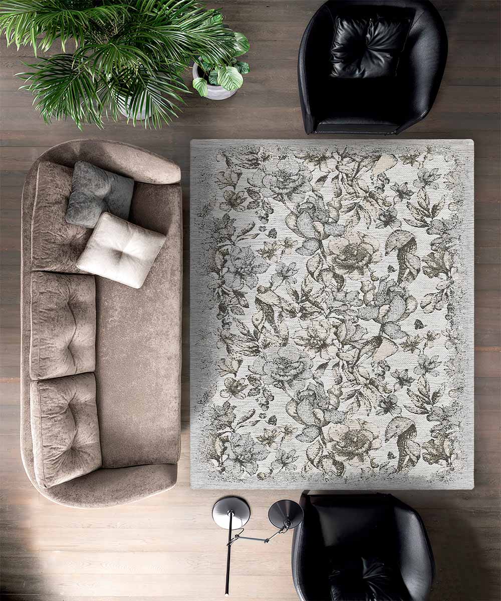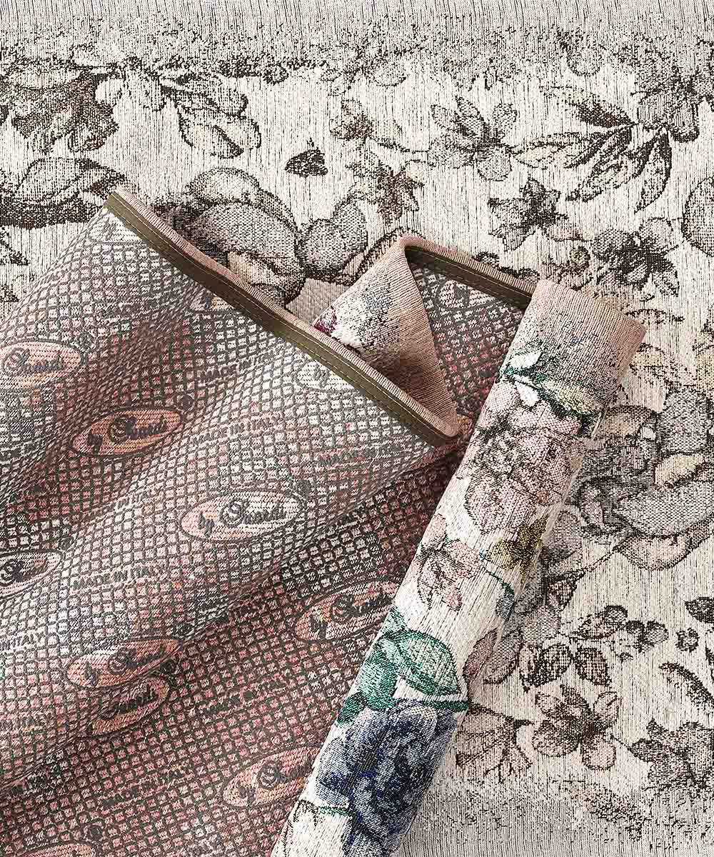 • Design floreale Biege Grigio in ciniglia Jacquard